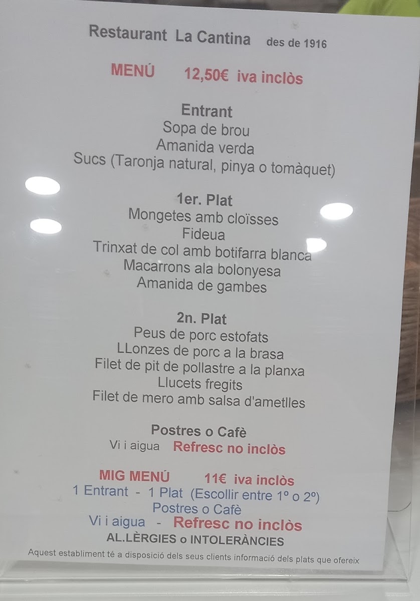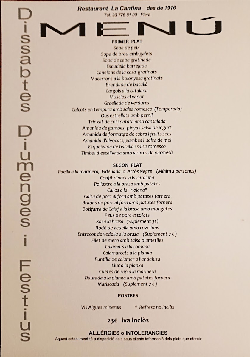 Restaurant la Cantina Menu